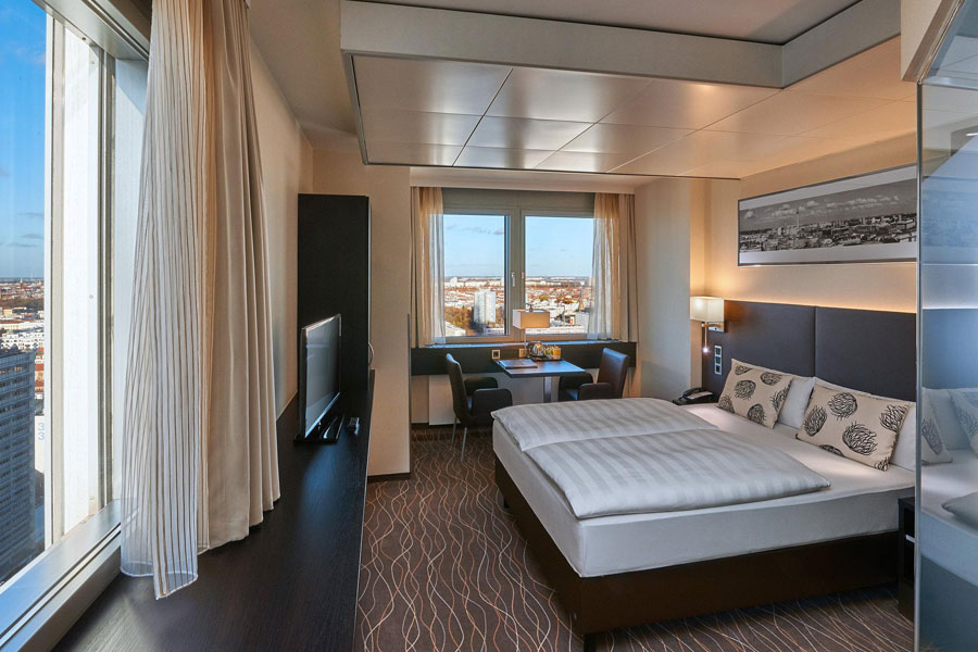 Det 4-stjernede hotel ligger direkte på Alexanderplatz, i gåafstand til flere af byens berømte attraktioner. Alexanderplatz Station ligger lige overfor hotellet,  hvorfra der er forbindelser med bus, sporvogn, metro og S-Bahn til alle dele af Berlin. Museumsinsel og det livlige Hackescher Markt ligger 10 minutters gang derfra.