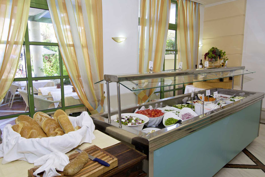 Forfriskninger, øl, vin, nogle alkoholiske drikkevarer ad libitum og lokal Ouzo i hotellets poolbar kl. 08.00-23.00.