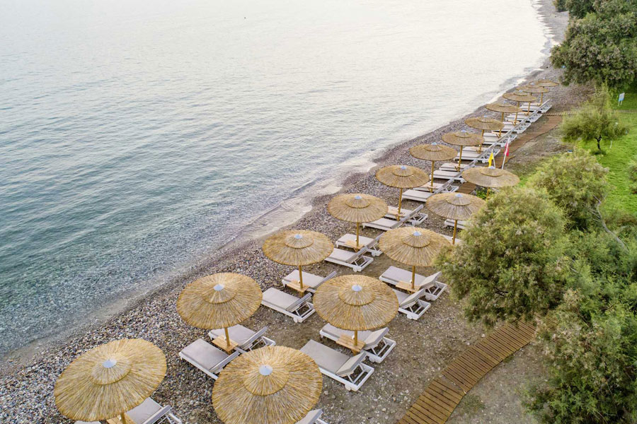 4-stjernet All Inclusive-hotel Samaina Inn på Samos, ligger i charmerende og rolige Karlovassi. Lige ved siden af hotellet ligger en lille stenstrand. Alle værelserne er med balkon, aircondition og deponering, køleskab, TV og hårtørrer. Badeværelse med badekar eller bruser samt toilet. Hotellet har restaurant, bar, poolbar, reception, lobby, butik samt wi-fi på fællesområder.