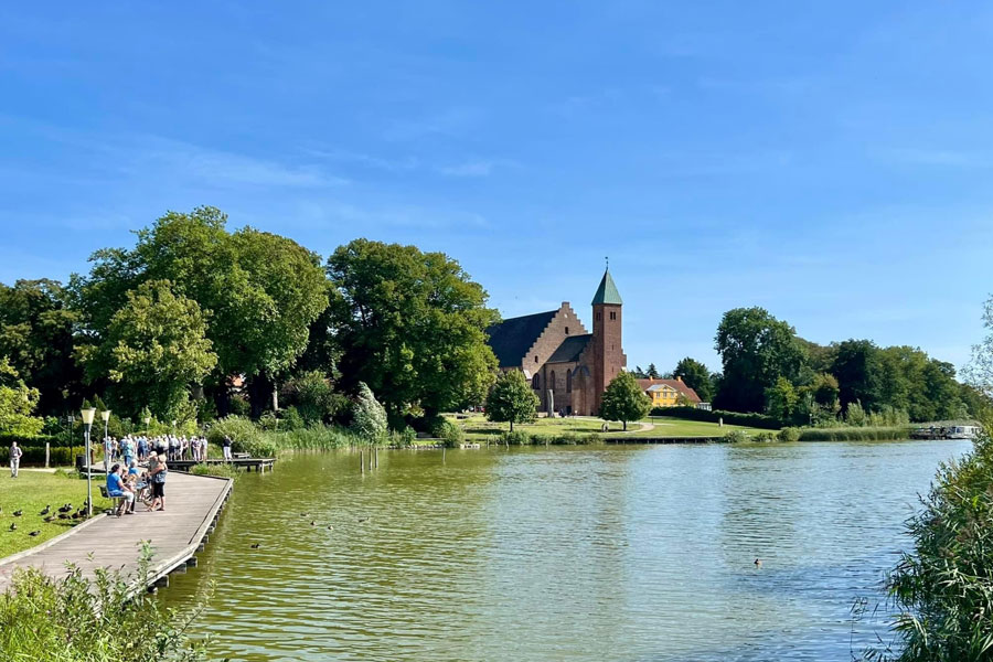 Vi kører over Frederik IX’ Bro til Lolland, gennem Guldborgsundtunnellen til Farøbroerne og over Sydsjælland til Dronning Alexandrines Bro til Møn. I Elmelunde Kirke ser vi de berømte kalkmalerier fra 1480’erne og fortsætter til Liselund Slot for at gå en tur i den smukke, romantiske park fra 1700-tallet. Næste stop er Møns Klint, hvis hvide kridtklinter rejser sig 128 meter over havet. Den er en af vores største naturseværdigheder – også set med internationale øjne. Et godt sted at nyde frokostpakken. Nyord ved Møns nordspids er på 4,99 km² og har 35 indbyggere. Først i 1968 fik den fast forbindelse til Møn via en dæmning og en bro. Vi sætter bussen uden for byen Nyord, som er bilfri og går en lille tur i byen. Vi kører tilbage til Falster, til Stubbekøbing og forbi Næsgård, hvor Prins Joachim fik sin landbrugsuddannelse, og derfra til fiskerlejet Hesnæs samt herregården Corselitzes smukke park, anlagt i engelsk stil. Vi vender tilbage til hotellet til aftensmad og overnatning.