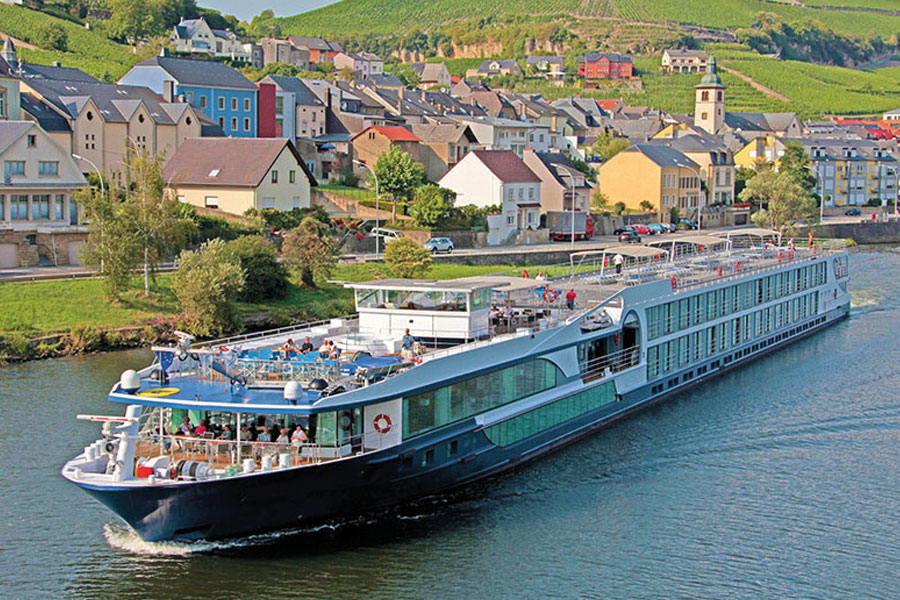 Langs de bugtende floder snor skibet sig roligt gennem et postkortsmukt landskab, hvor grønne vinmarker klatrer op ad skråningerne, gamle middelalderborge troner majestætisk over floden, og små idylliske byer byder velkommen med bindingsværkshuse, brostensbelagte gader og hyggelige vinudsalg.
