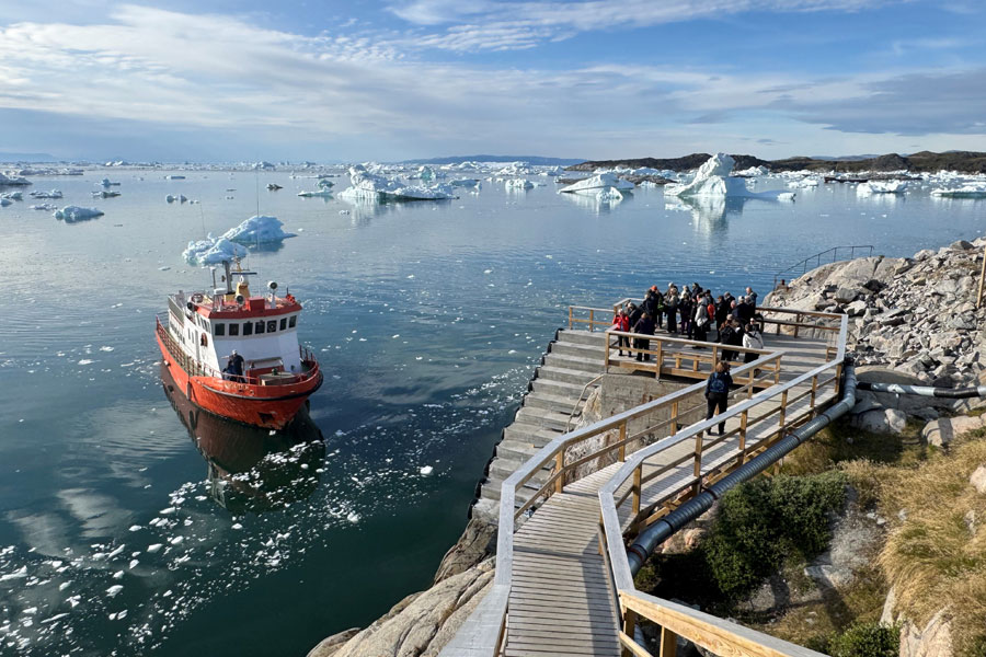 Vi skal opleve et af verdens største naturvidundere, når vi sejler mellem de enorme isbjerge i den mægtige bugt, der ligger mellem Grønlands vestkyst og Disko-øen. Sejlturen varer ca. 2,5 time og da Ilulissat ligger tæt på den imponerende Sermeq Kujalleq-gletsjer, er det garanteret, at vi får set masser af de isbjerge, der hver sommer bevæger sig gennem bugten på deres vej mod Atlanterhavet.