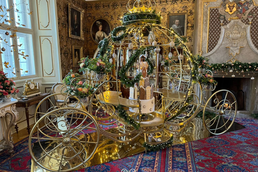 Det smukkeste julepynt og flotte dekorationer kan nydes på renæssanceslottet, der kan dateres helt tilbage til 1481. Rundt på slottet oplever man en fantastisk atmosfære. I Ridehallen og rundt omkring på slottets arealer finder du stemningsfyldte boder med både lækkerier og mulighed for at gøre gode julegaveindkøb.