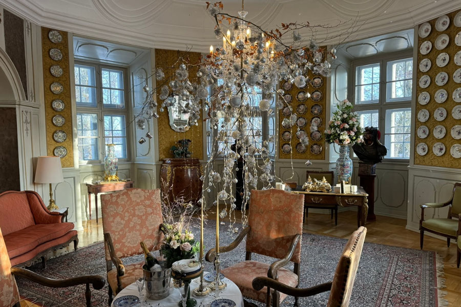 Efter opsamling køres nordpå med kaffe/rundstykke pause ved bussen, inden vi ankommer til Voergaard Slot. Her skal vi besøge det hyggelige og stemningsfyldte julemarked. Slottet er pyntet smukt op med overdådige dekorationer, kreeret af Bjarne Als fra Bering House of Flowers. Helt usædvanligt kan vi få lov til at gå rundt på slottet og nyde de smukke saloner og den overdådige udsmykning.