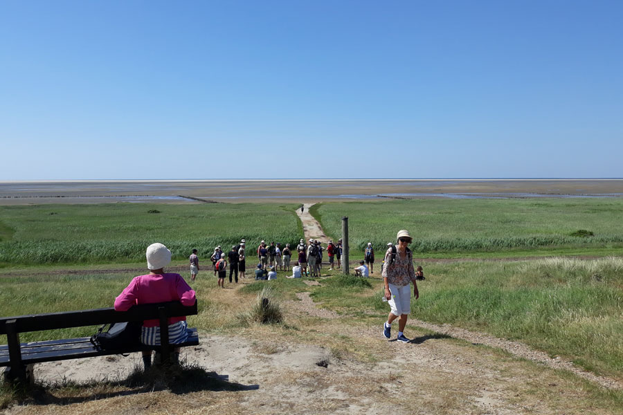Sammenligner man Fanø og Rømø med Mandø ses det tydeligt, at Mandø har været en fattig ø i forhold til naboøerne, idet Mandø aldrig har haft en havn. Øen er afskåret fra fastlandet 2 gange i døgnet pga. højvande, hvor vandstanden stiger ca. 1,5 m. På Fanø har man en færge, Rømø har en dæmning og er dermed ikke afhængige af tidevandet, som man er på Mandø. På Restaurant Mandø bliver der serveret en 2-retters menu, samt kaffe med kringle. Vi får en fortælling om stormfloder, tidevand og hvorfor Mandø hedder Mandø - mændenes ø. Vi kører med Mandøbussen tilbage til Vester Vedsted og derfra direkte til hjembyerne.