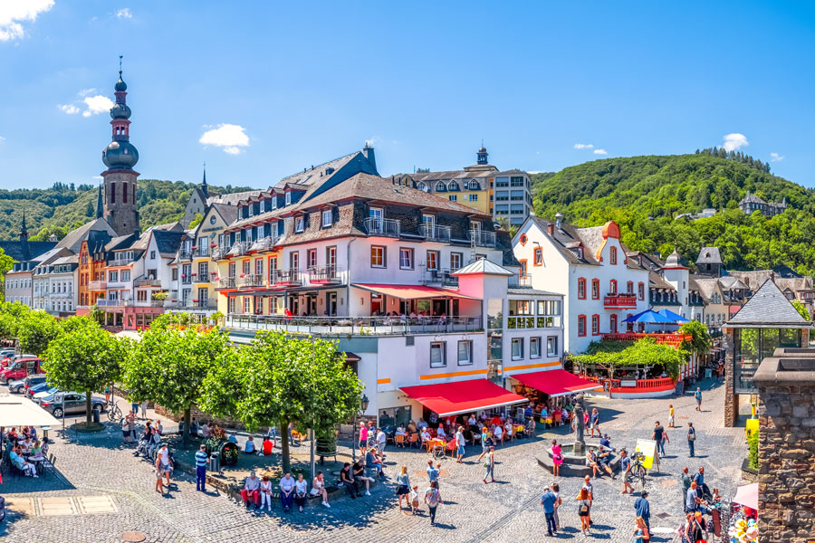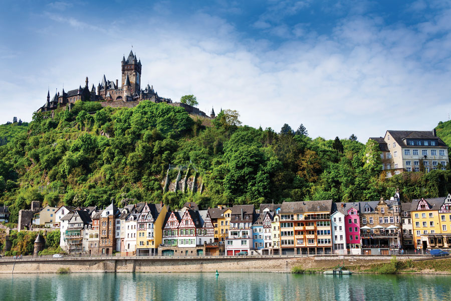 Om formiddagen kører vi den korte vej til Cochem. I den driftige gamle bydel kan man beundre de nænsomt restaurerede og velholdte bindingsværkshuse, barok-rådhuset og Martins-brønden på markedspladsen. På Hochwasser”-markeringer kan vi se, hvor højt vandet har stået ved oversvømmelser. Cochem er en hyggelig turist- og vinby med borgen Reichburg tronende højt over byens tage. Mange smukke bygninger, smalle, brostensbelagte stræder, caféer og butikker kendetegner byen. Over middag sejler vi på Mosel fra Cochem til Beilstein og nyder den smukke natur, de små vinbyer og de enorme vinmarker. På sejladsen passerer vi en af de mange sluser. Der bliver tid til at kigge på Beilstein, som også kaldes ”Mosels sovende skønhed”. Byen er fredet og har dannet kulisse for flere tyske filmoptagelser. På en lille gåtur rundt i byen ser vi også byens historiske markedsplads. Bussen bringer os tilbage til Löf.