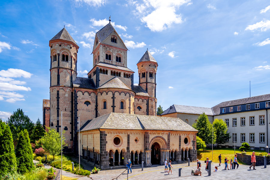Første punkt på dagens program er munkeklosteret Maria Laach ved Laachersøen. Her arbejder munkene på klosterværkstederne med keramik, kunst og skulpturer. De driver også hotel, planteskole og frugtplantage, så det er et spændende sted at besøge. Vi fortsætter til Koblenz, der med sine 2.000 år er en af Tysklands ældste og smukkeste byer, omgivet af vinskråninger og skove. Vi kører til Deutsches Eck, stedet hvor Mosel støder til Rhinen. Man kan – mod egen betaling – tage svævebanen tur-retur til Deutsches Eck, hvor delstatsflaget– og nationalflaget omkranser en 37 meter høj rytterstatue af Kejser Wilhelm I.