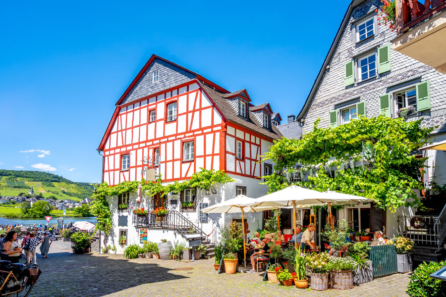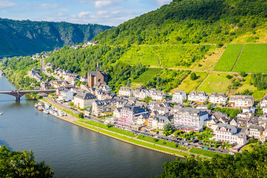 Floden Mosels vej gennem landskabet er indbegrebet af det romantiske Tyskland med slotte, borge, vinmarker og små, maleriske landsbyer. Slotte og borgruiner på hver bjergtinde fortæller om fortidens dramatiske begivenheder. Vinbønder tilbyder smagsprøver, og små gastronomiske steder lokker med god mad og masser af hygge. Mosel flyder i bløde sløjfer med udsyn til solfyldte skråninger med vinmarker og idylliske vinbyer. Over en strækning på ca. 120 km skærer Mosel sig ned i landskabet og skaber nogle af de smukkeste og mest stejle vinbjerge i Europa. Landskabet omkring Mosel er simpelthen enestående og skal bare opleves. Vi skal bo på det hyggelige familiehotel Traube ”Druen” i vinbyen Löf.