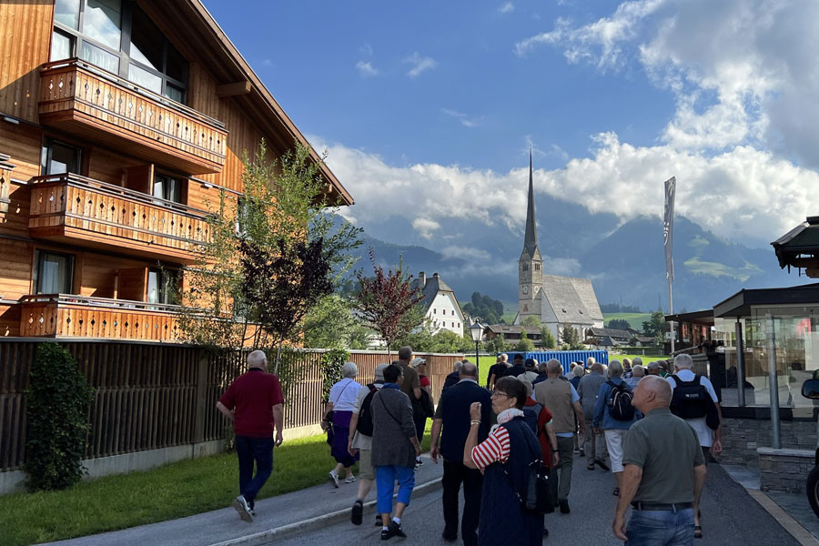 Efter en god nats søvn og et solidt morgenbord tager vi plads i bussen og fortsætter sydpå gennem Bayern. Sidst på eftermiddagen er vi fremme i Maria Alm.
