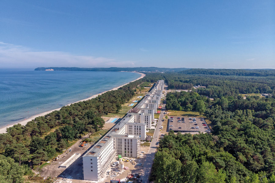 Dagens udflugt bringer os sydpå til Rügen Naturcenter med et 40 meter højt udsigtstårn, også kendt som Ørnereden. Det er nemlig udformet som en kæmpemæssig ørnerede bygget op af trælameller. Ved god sigtbarhed kan man endda se toppen af kirketårnene i Stralsund og pylonerne på broen til Rügen. Herfra skal vi forbi ”Koloss von Prora”, som Hitler lod opføre. Den består af otte 6-etagers hotelbygninger med plads til 20.000 feriegæster og ville dermed blive et af datidens største feriekomplekser med store indendørs svømmehaller, teater- og biografsal. Der var tilmed planlagt en festsal med plads til samtlige 20.000 feriegæster. Det blev dog aldrig færdigt pga. krigens udbrud og kom aldrig i brug. Vi fortsætter til Rügen-Markt, et marked hvor omkring 100 små producenter og håndværkere fra Vestpommern-Rügen-regionen præsenterer et stort udvalg af unikke håndlavede produkter og regionale specialiteter. Vi besøger også badebyen Göhren, inden der køres retur til hotellet