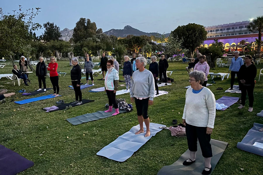 Hver dag vil der være forskellige aktiviteter. Du kan dagligt vælge mellem flere motionsformer til både krop og sjæl.