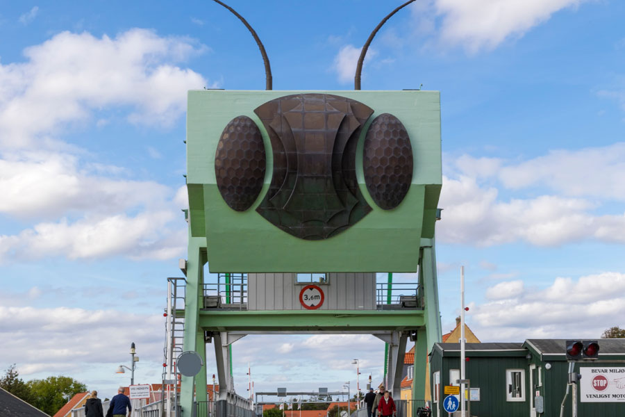 Det er også her vi finder den ikoniske græshoppebro, der forbinder Sydsjælland og Enø, som springer åben for at gøre plads til de store sejlbåde, der skal fra Smålandsfarvandet og ind og lægge til kaj ved havnepladserne i fjorden. Det er muligt at gå over Græshoppebroen til Enø.