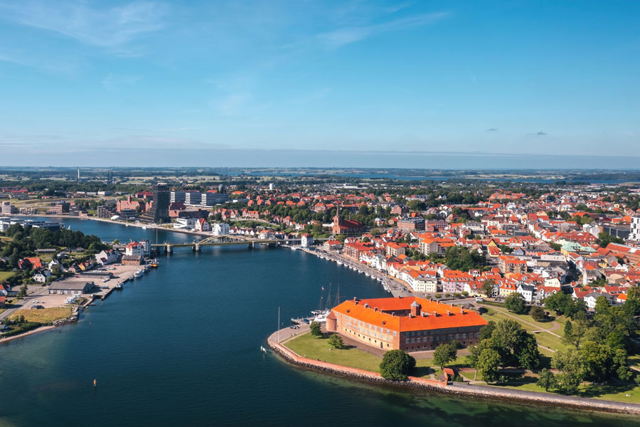Turen går videre til Ribe, Højer og Møgeltønder og derefter tværs over Sønderjylland til Kruså og langs med Flensborg Fjord. Vi passerer Dybbøl Mølle undervejs til Sønderborg, hvor der er udsigt til slottet, inden vi når færgen Fynshav-Bøjden. Herfra videre til Fåborg, hvor vi bliver indkvarteret og får aftensmad på hotellet.