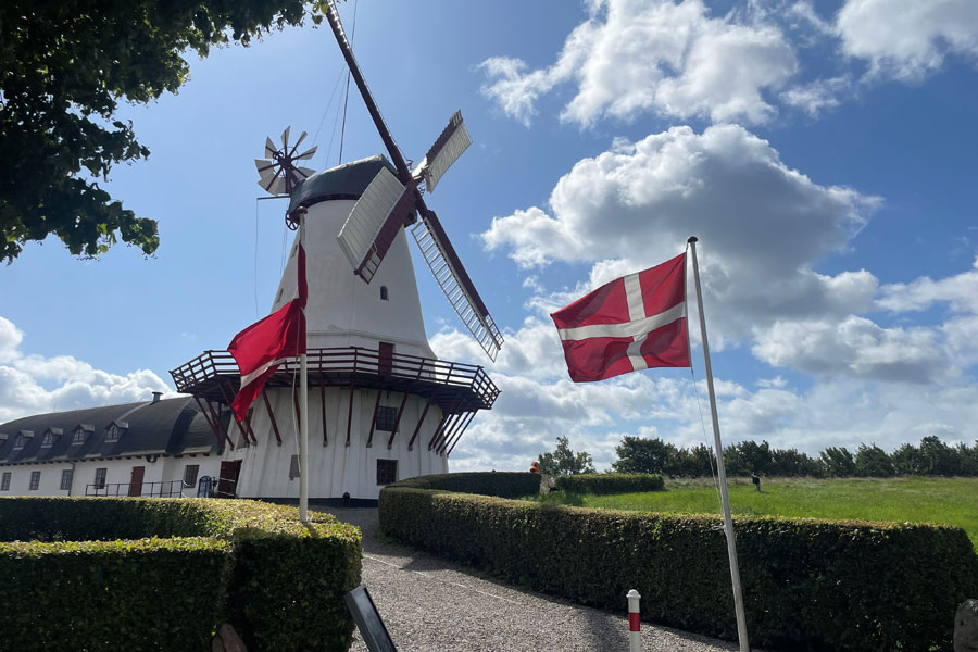 Efter en god nattesøvn fortsætter vi forbi Svendborg over Langelandsbroen til færgen ved Spodsbjerg-Tårs. På Lolland kører vi sydpå til det 63 km lange Sydlollandske dige ved den lille havn Kramnitse. Herfra er der udsigt til Nordeuropas største pumpestation, som holder den nu inddæmmede Rødby Fjord tør for vand. Efter en kaffepause i Mindeparken fortsætter vi til det imponerende Femern Bælt tunnelprojekt og får et godt overblik fra udsigtspunktet, Pilen.Herfra går turen gennem charmerende landsbyer østpå, hen over det flade Lolland over Guldborgsund, Farø og Bogø til Møn med besøg på Møns Klint. Tilbagevejen går over nordspidsen til Nyord, der er på 4,99 km². Øen er bilfri og har 35 indbyggere. Først i 1968 fik den fast forbindelse til Møn via en dæmning og en bro. Bussen parkeres uden for byen, hvor vi går en lille tur. Der er aftensmad og indkvartering på Hotel Præstekilde Møn.