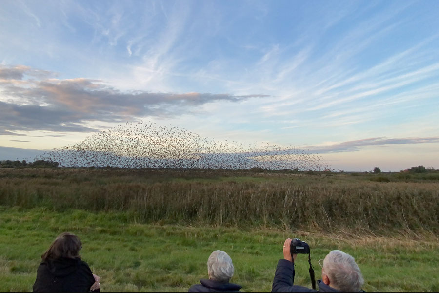 Marskengene giver grundlag for et rigt fugleliv, vadefugle og ænder har gode ynglepladser. Der er mange gæs og svaner der overvintrer i området. Først på aftenen skal vi opleve Danmarks flotteste naturfænomen - Sort Sol, som opstår når landets største stæreflokke samles over marskens tagrørsområder og opfører den fantastiske ”ballet” på aftenhimlen. Lige før stærene går ned på jorden for natten, så tegner de store flokke fascinerende mønstre på himlen. Det kalder man ”Sort Sol”.