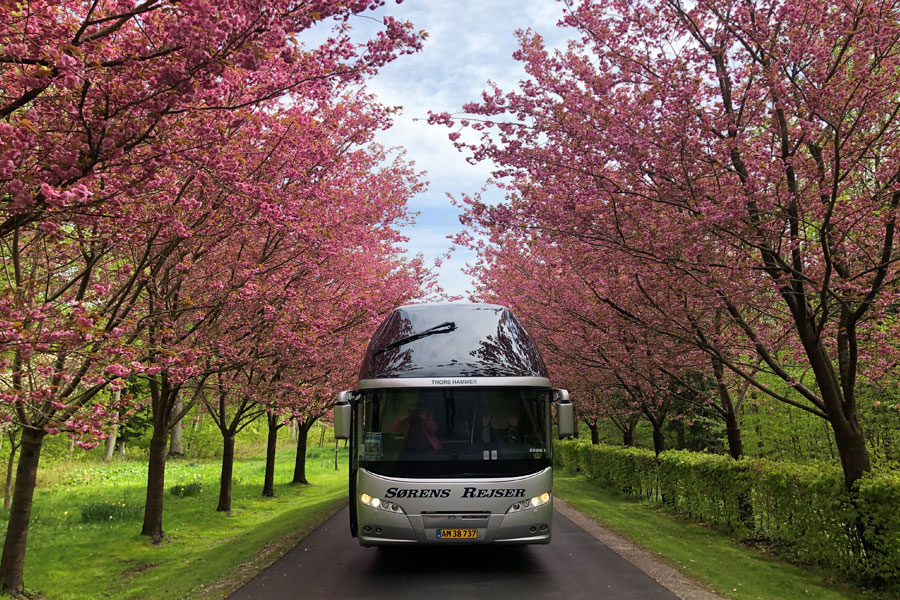 Efter opsamling køres mod Sydsjælland, hvor vi undervejs får kaffe og rundstykke. På Gavnø Slot starter vi vores besøg med en rundvisning på slottet og i kirken. Efter rundvisningen er der tid i parken og mulighed for at spise frokost i Slots caféen. Oplev flere tusinde tulipansorter i eventyrlige farvespil, der fremvises i en enestående pallette af sorter og sammensætninger. De førende løgavlere i Danmark viser deres ypperste præstationer. Tulipanfestivalen består af både tidlige og sene sorter. Uanset hvornår du besøger festivalen, vil de smukke tulipaner pryde slotsparken. Festivalen har siden sin begyndelse i 1957 været og er i dag stadig, Danmarks største af sin art. Midt på eftermiddagen køres mod Jylland og på Fyn nyder vi en 2-retters middag, inden vi kører det sidste stykke vej mod vores hjembyer.