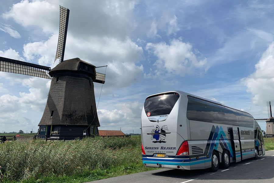 Zaanse Schans er et af højdepunkterne i Holland og ligger kun en halv times kørsel fra vores hotel. Området er et arbejdersamfund, der kan dateres tilbage til det 18. og 19. århundrede. Her er spækket med trævindmøller, lader, huse og museer bygget i typisk hollandsk arkitektonisk stil. Smagen, duften og oplevelsen er fantastisk i denne by. Der er mulighed for at komme ind i vindmøllerne, dog mod egenbetaling. Turen fortsætter til Alkmaar, der er kendt for sine mange gamle huse og kanaler. Herfra går turen gennem det skønne landområde tilbage til hotellet.