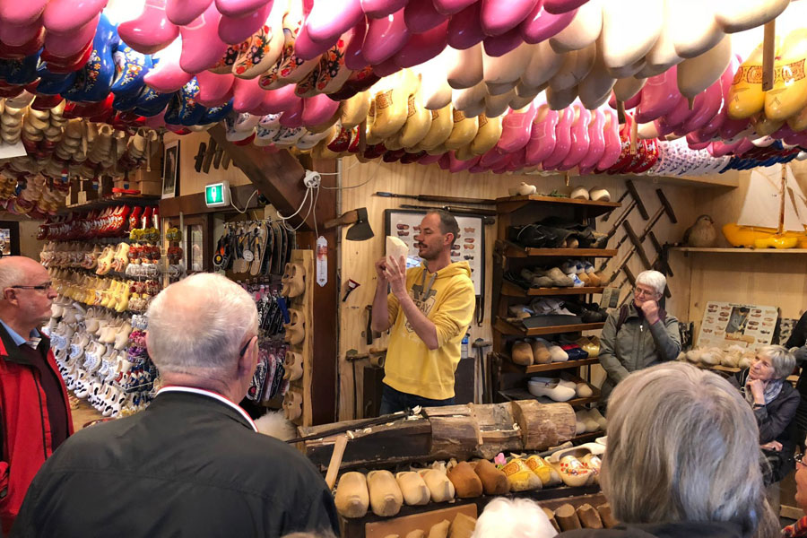 Efter morgenmaden kører vi til fiskerlejet Volendam. Byen er en meget populær turistattraktion, kendt for sine gamle fiskerbåde, de smukke, tidløse og karakteristiske gamle huse og den traditionelle nationaldragt, der stadig anvendes af nogle beboere. Herfra til Clara Marie, hvor der fremstilles mange forskellige oste og de berømte hollandske træsko. Vi fortsætter til verdens største blomsterpark Keukenhof, som er en sand fryd for øjet, hvad farver og blomsterpragt angår. Her er millioner af løgplanter, søer og specielle udstillinger i store drivhuse.