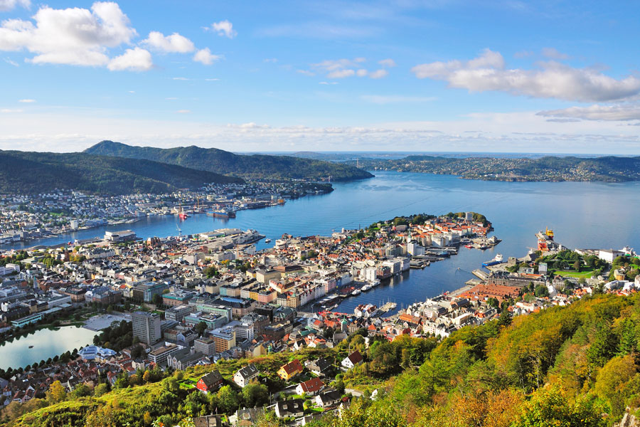 Vi slår øjnene op til et fantastisk syn. Allerede kl. 06.30 ankommer vi til Stavanger og vi kan følge med i indsejlingen, mens vi nyder skibets morgenmad. Vi bliver ombord og sejler videre til Bergen, der er på Unescos Verdensarvsliste. En sejltur med sjæl - med udsigt til majestætiske fjelde, dybe fjorde og den afvekslende skærgård. Kl. 12.30 går vi i land i Bergen og siger farvel til skibet. Vi stiger på bussen og får på køreturen et godt indtryk af byens historie og struktur. Kendte steder som Bryggen, Fisketorget, Grieghallen og Festningsområdet er nogle af højdepunkterne. Vi tager Fløibanen op på Bergens højeste punkt 302 meter over havets overflade. Derfra har man en fantastisk udsigt ud over Norges næststørste by, der er omkranset af 7 fjelde. Sidst på dagen tjekker vi ind på vores hotel ved havnen og efter spisning på hotellet er det oplagt at indsnuse aftenstemningen i Bergen på en lille spadseretur.