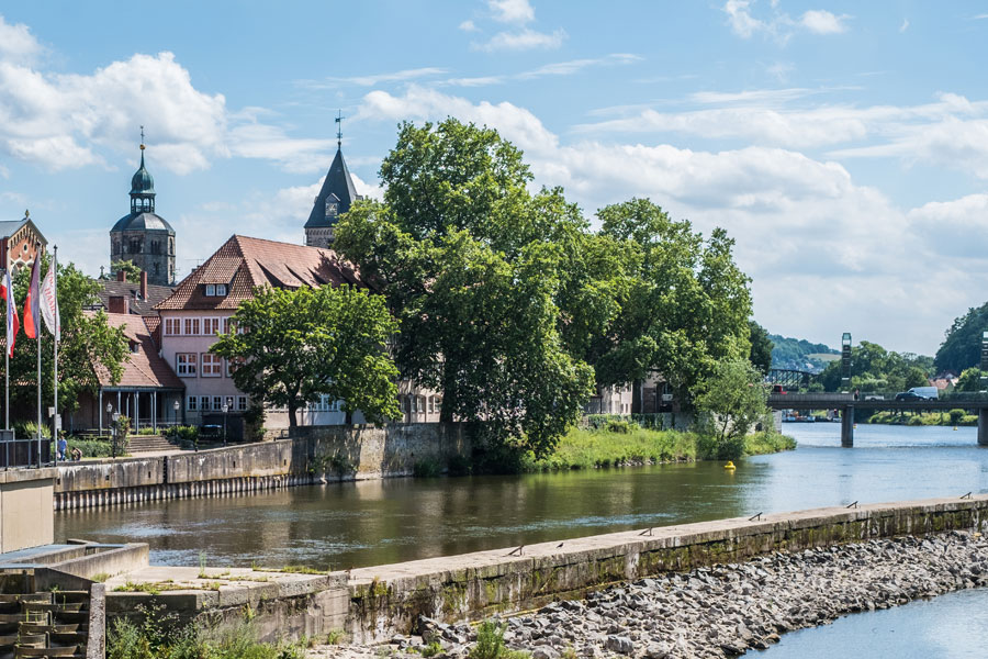 Først køres til byen Höxter, hvor også slottet Corvey ligger. Vi besøger slottet, der oprindeligt var et kloster, samt den smukke klosterkirke. Klosteret er blevet optaget på UNESCO's Verdensarvliste. Vi fortsætter sydpå til byen Han. Münden. Alexander von Humboldt siges at have omtalt Han. Münden som en af de syv smukkest beliggende byer i verden. Bindingsværksbyen med sin middelalderlige gamle bydel, har en befolkning på cirka 24.000, og er beliggende mellem de tre floder Werra, Fulda og Weser og tre fortryllede skove, der inspirerede Brødrene Grimms eventyr. Vi holder en længere pause, så vi får mulighed til at opleve både sluserne og den smukke gamle bydel. Vi nyder en god frokostbuffet på det gamle rådhus.